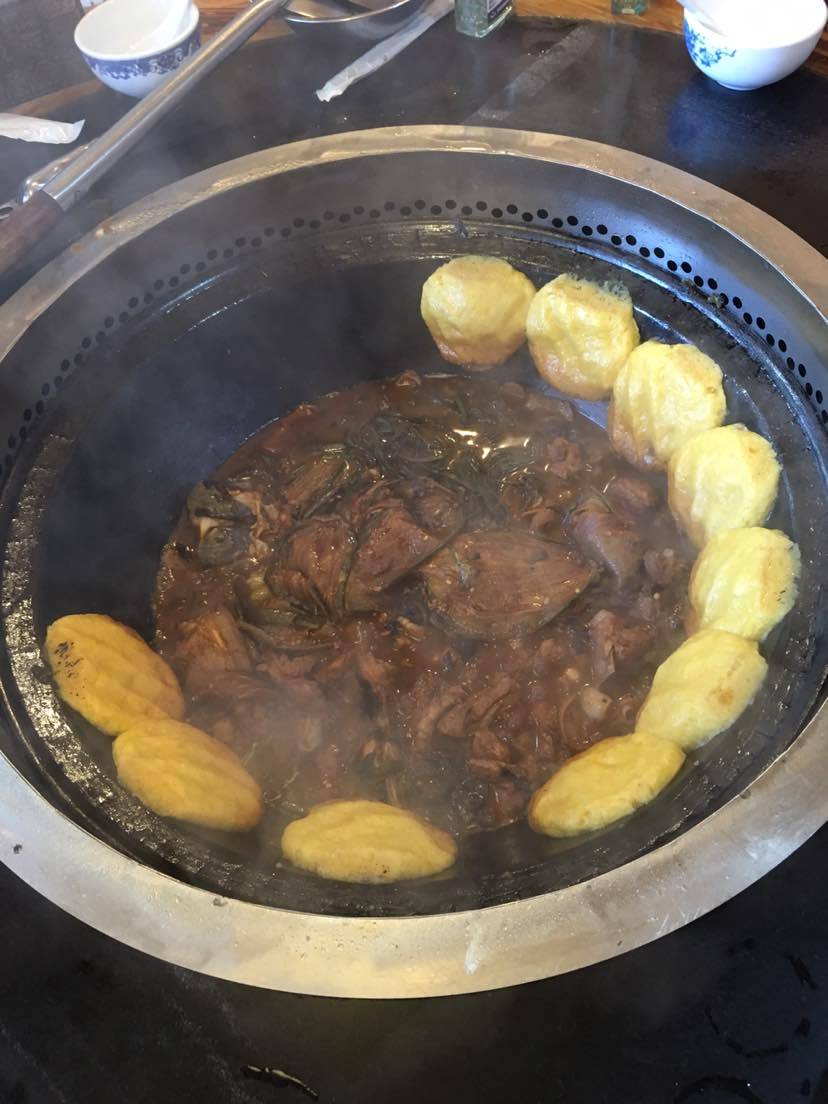 这是我们的午饭,排骨、鱼、茄子干、土豆干、干豆角和五花肉在一起炖的,好吃极了。