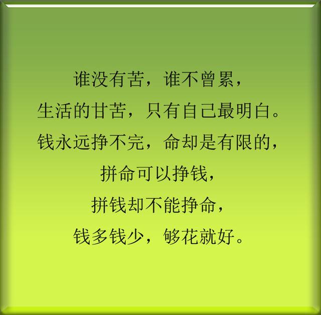 钱永远赚不完,钱多钱少,够花就好