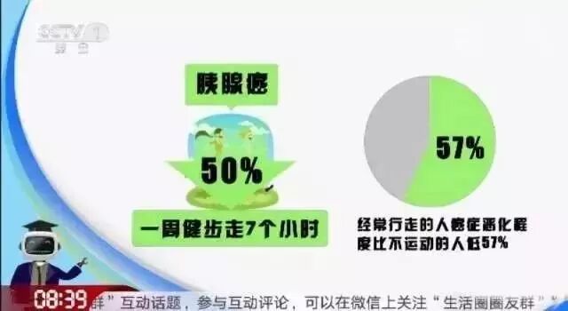 胰腺癌患癌风险降低50%,如果一旦患癌,经常行走的人癌症恶化程度比不运动的人低57%。