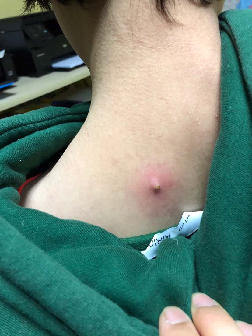 我去年在大腿内侧长了一个,用针挑破然后挤出浓来,结痂没事了,只不过现在流了小疤,
