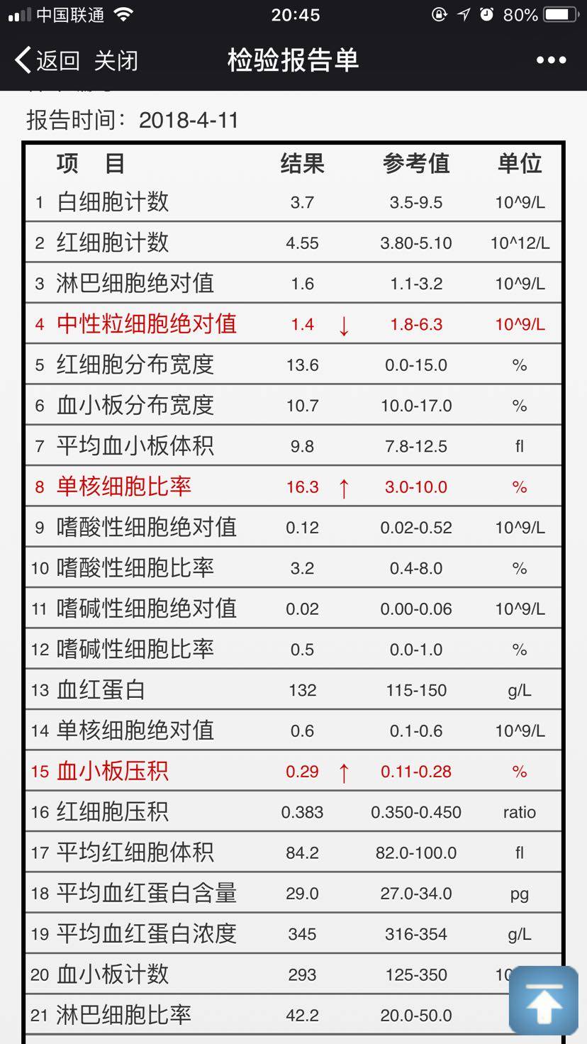 血常规白细胞倒是蛮好的,虽然白细胞3.7,但是中粒1.4还是偏低了点,我连吃2天黄鳝骨头熬汤,一下白细胞和中粒都提高的很好了。分享给大家一下:黄鳝骨头,去头去尾洗的很干净。加几颗红枣,加几朵香菇,加几片姜片,料酒少许,不放任何调料。用高压锅煮开后,大火压10多分钟然后小火压2小时左右,再大火压10多分钟。煮好后喝水,上午一碗,下午一碗,味道也不错。(以前我用砂锅煮就没有这个效果,煮不出这么浓)