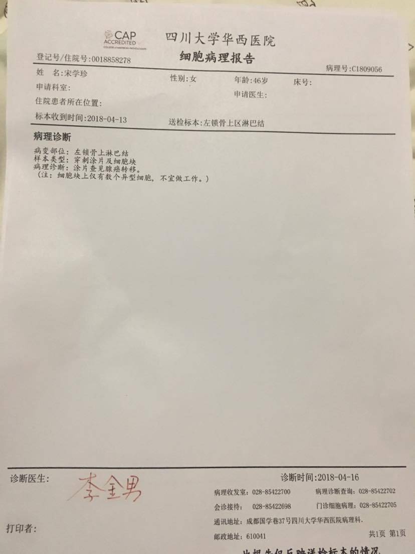 一个月以前我还是能没心没肺睡到12点的人,过年那段时间家里没什么农活,橘子在树上不用管,葡萄冬天还没开始发芽,所以我妈比较空我就比较幸福了,早上八点过女儿一醒我妈就抱走了帮她穿衣服洗脸洗屁股冲奶粉然后带着出去逛路,我呢可以睡到11.2点,真是一天睡12个小时都不够,现在想想那时候脑子里面一点需要烦恼的都没有,人自然而然的就能睡了。昨天第一次陪我妈来省里治疗的医院,医院很大,但没我想象中的高大上😄我们开了个房间在医院门口,晚上叫来了在成都上班的表妹我们一起吃了饭,然后几个人一路去锦里逛了一圈,明明是周三但却是人挤人人挤人,我现在都没想明白怎么不是节假日会有那么多人呢,九点多回了住的地方,给娃娃洗澡,然后我妈去洗澡,我去洗澡,期间我女儿从床上摔下去一次,当时我妈在烧开水我却在那看个手机,想着女儿自己在床上耍就没看,一下摔下去我妈因为太稀奇外孙女说了我一顿,我当时也急了,娃娃哭我心里也不好受了而且事情已经这样我妈还来说我我就很不理智的回了几句,说出去之后一直在后悔,妈妈明明生着这么重的病,我却还要说伤她的话。快12点的时候我妈才睡着,我又等了会才睡,早上7点我醒了发现我妈已经穿戴整齐并且烧了开水晾好要出门去医院了,女儿被惊醒看到外婆开门出去哭的非常伤心我抱着哄了会她又继续睡,而我明明觉得眼睛涩的痛但脑袋却异常清楚根本没法再睡。这就是脑子里面装了很多事和以前没心没肺的区别吧。我妈生病的事我没有告诉我小时候的玩伴,同个县城的小学初中高中同学,我不想他们来关心我或者询问我,朋友圈发到相关的讯息我都会设他们为不可见。还好我及时发现了有觅健这个平台,还好我的手机号因为是淘宝和联通合作的166开头注册平台验证时说号码有误有个跟客服沟通的入口他帮我注册上了,不然我的很多话,很多情绪都不知道要去哪里释放。以前我根本不觉得我能承受这么多,现在觉得不管任何事情都不会将我击倒,我必须扛起来。上几次帖子很多病友姐姐和阿姨找我买了橘子,都是不认识的人能选择相信我,我真的心里很感动很感谢大家。感恩❤️正在打字的时候我妈冲了管子换了药回来了,还有fish和锁骨穿刺,我看着好像不太好又不怎么懂,希望大家帮我看看🌹