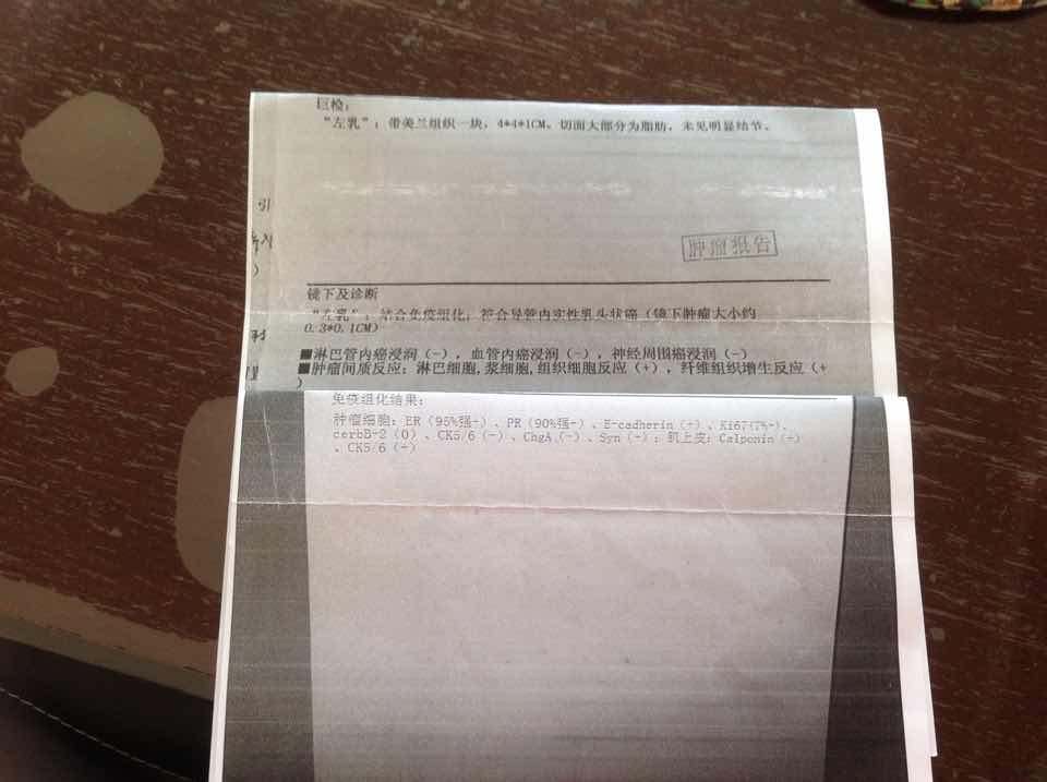 我也和你差不多,生病后也想开了,不在那么劳累了,要为自己和家人好好活着,我想问问你的肿块大小0.7是指浸润癌部分吗?内分泌治疗是口服他莫西芬吗?还做卵巢去势了吗?我的浸润部分0.7其他是导管原位癌,我只是口服他莫昔芬。