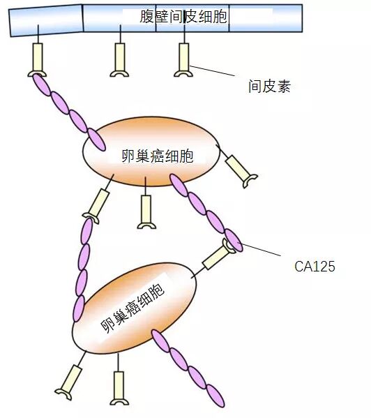 CA125被认为参与了细胞间的相互作用,从而促进肿瘤细胞的转移。有证据表明,CA125和间皮素(一种由腹腔内壁间皮表达的糖蛋白)的相互作用被认为是肿瘤细胞侵入腹膜引起腹腔转移乃至腹水形成的第一步。