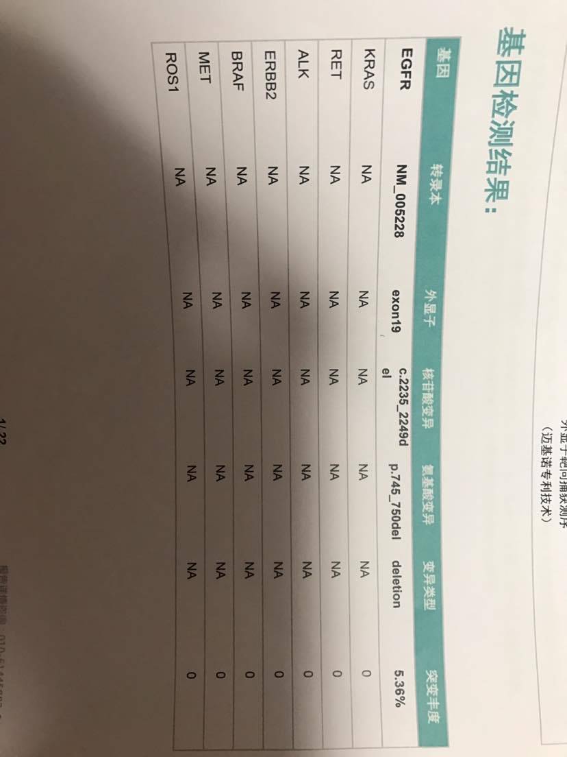 我是问您要不要做头部核磁的,目前吃凯美纳的。我母亲有基因突变,19突变,下面是血液基因检测的结果,这里ROS没有突变啊,和腿部穿刺结果不太一样呢?