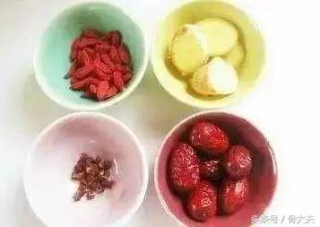 红枣6颗、枸杞一把、花椒十几颗、生姜4片(生姜不要去皮,姜的分量不要少,煮出来的水喝起来要有点辣辣的),另外红枣要去核。