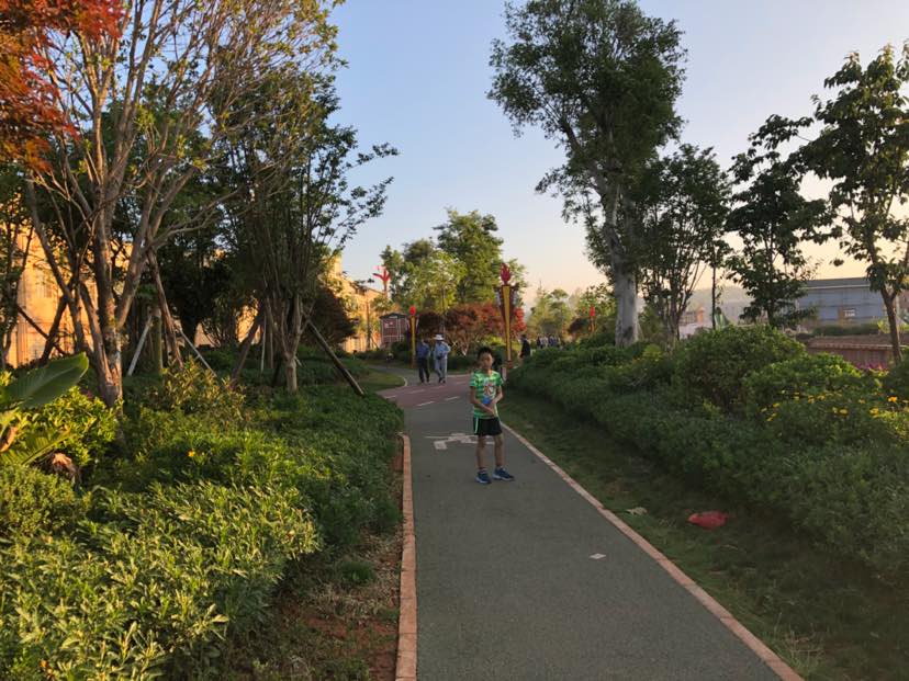 今天7:00我带上儿子陪我快步了半小时,边走边聊天。回家后一家三口吃了早餐,其实幸福就是这样简单