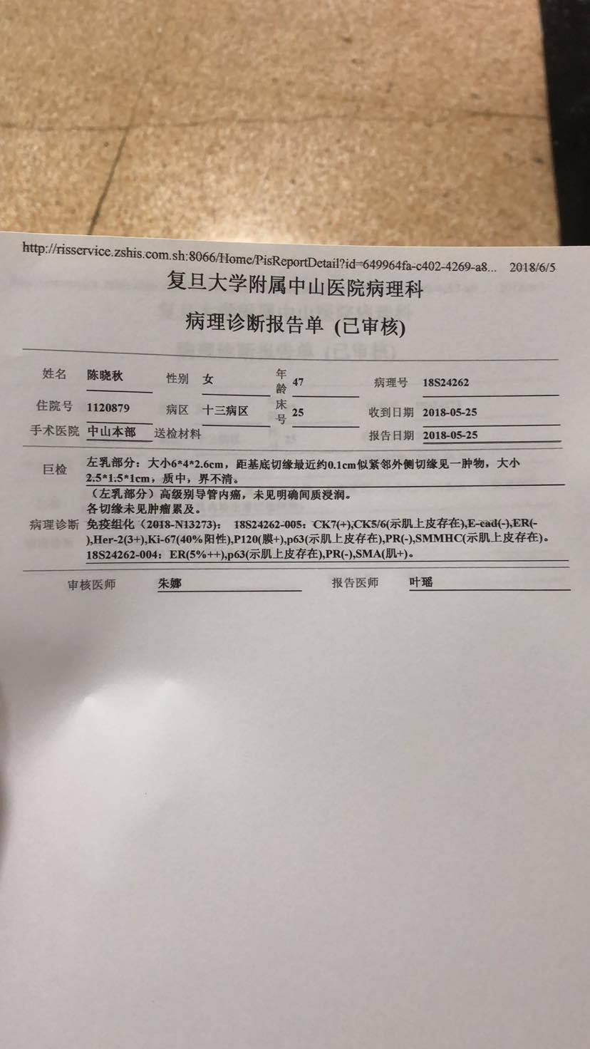原位未浸润,很轻的病理。ER与PR阴,不用内分泌治疗。HER2十3要赫塞汀靶向治疗。