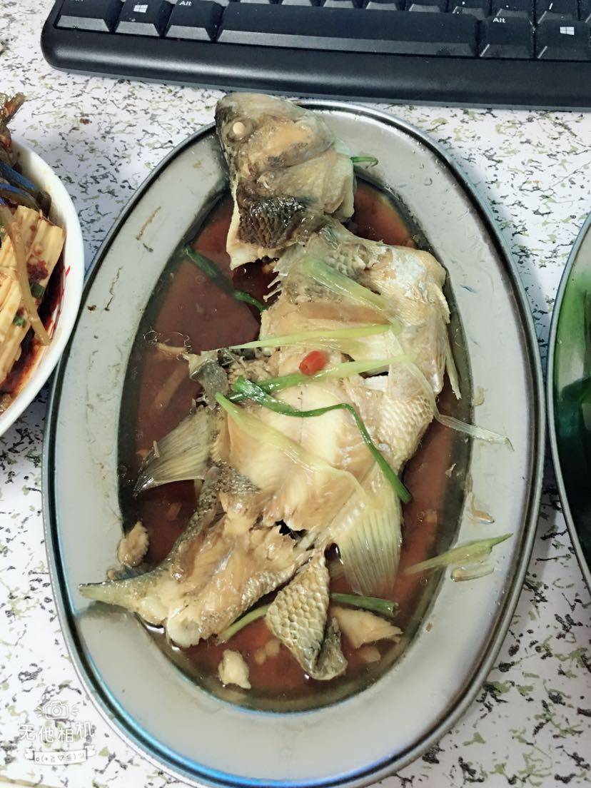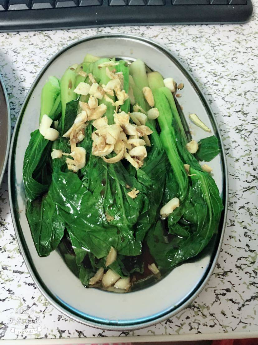 鱼被我吃了一半了😂,多的留给老公,特爱吃这个青菜😋