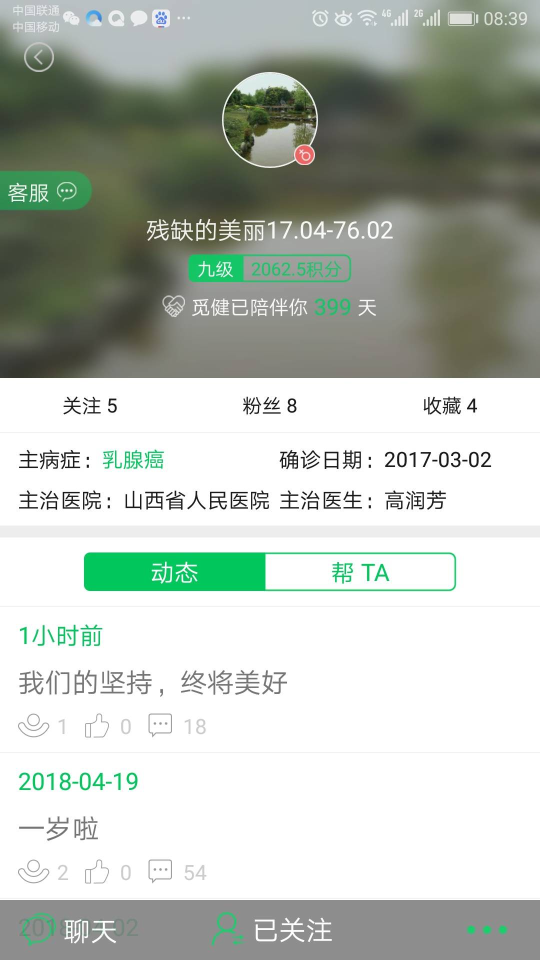 我才发现我们都是高主任做的手术,而且还是同一天,还真有缘啊!