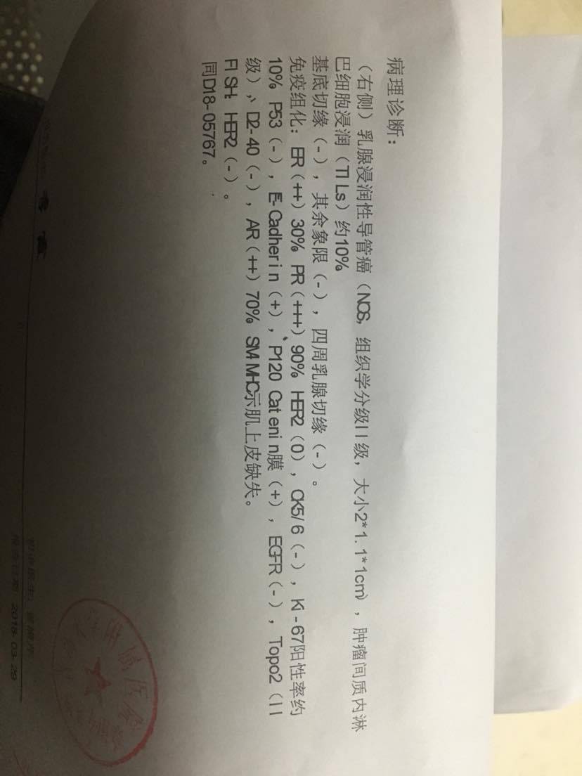 病理很轻,二阳一阴最好的病理,Ki值很低,可内分泌治疗