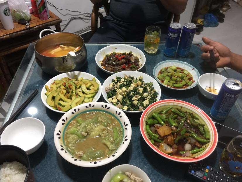 给我带了礼物,给我们做了一桌子好吃的,整一桌子,光盘了。。
