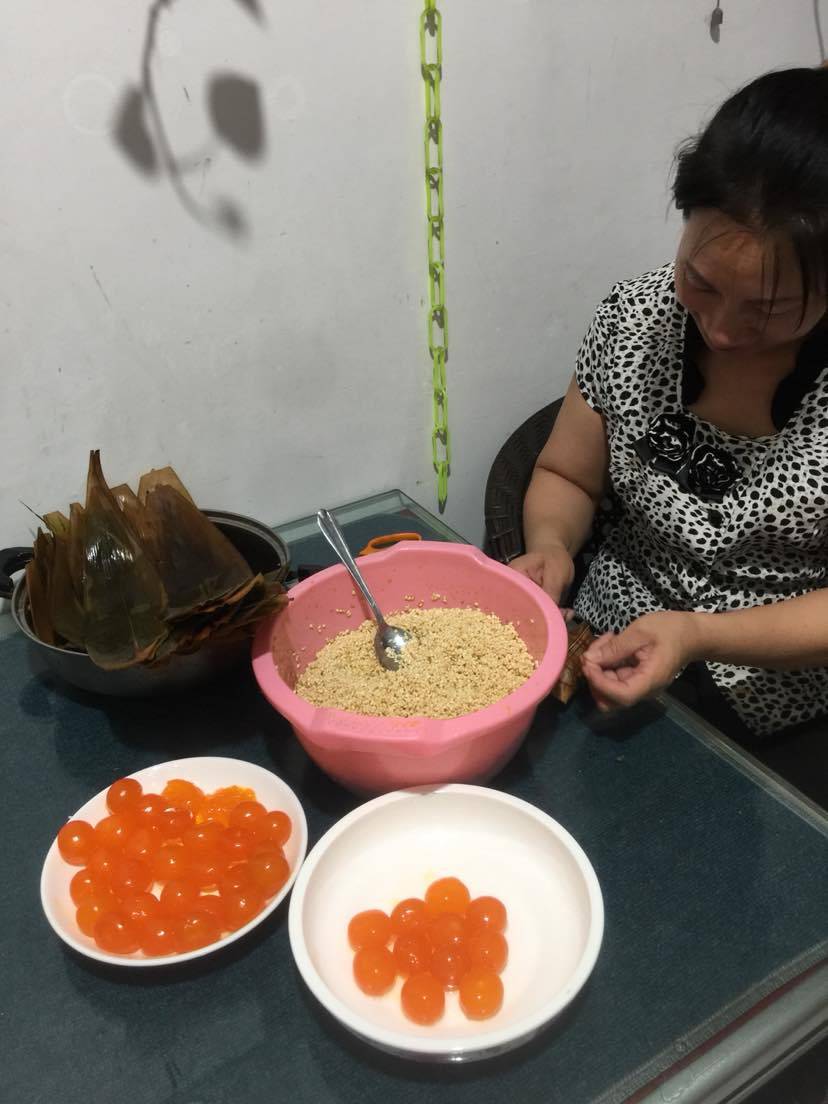 饭后,做了两锅蛋黄粽,临走又把咸蛋白,给我蒸好,让我明天好带去吃。。