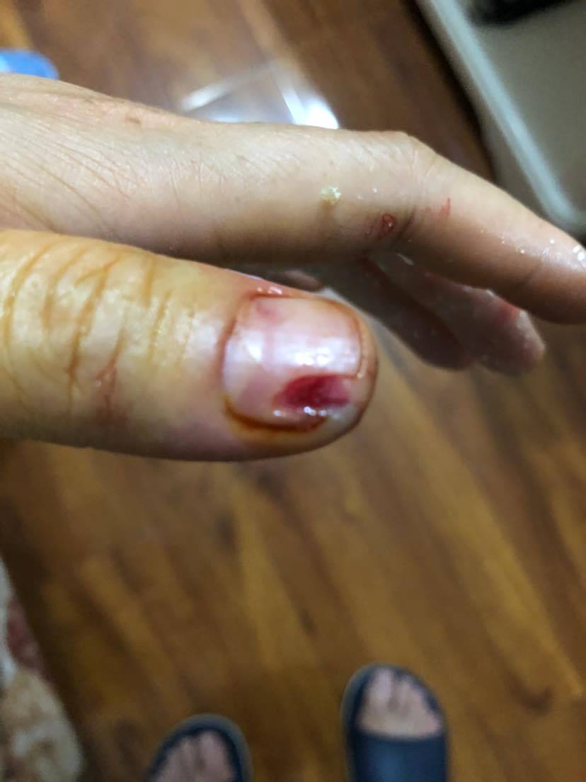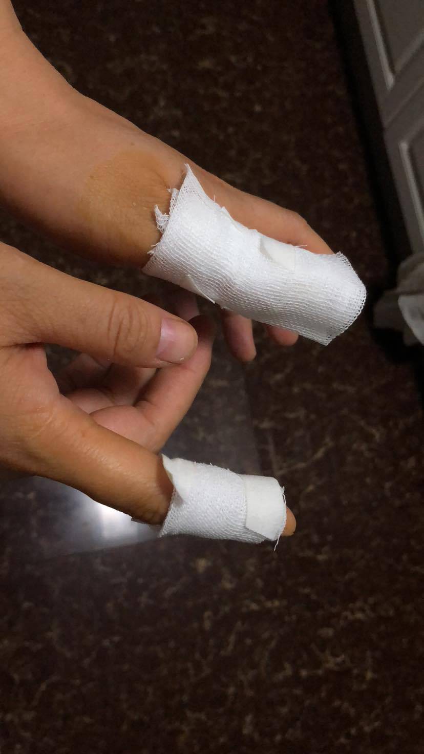 这么惊心动魄的。看着都疼,两手都受伤,这回老实呆两天吧。吃点红伤药没?