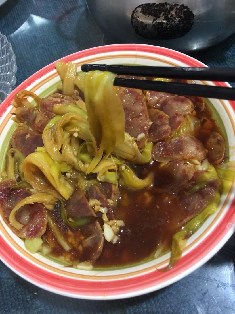 我今天很贤惠,纯妈做了火龙果花给我吃,董浩叔叔没赶上。我单独给他煎了盘年糕,他就着火龙果花的汤汁就吃下去了。