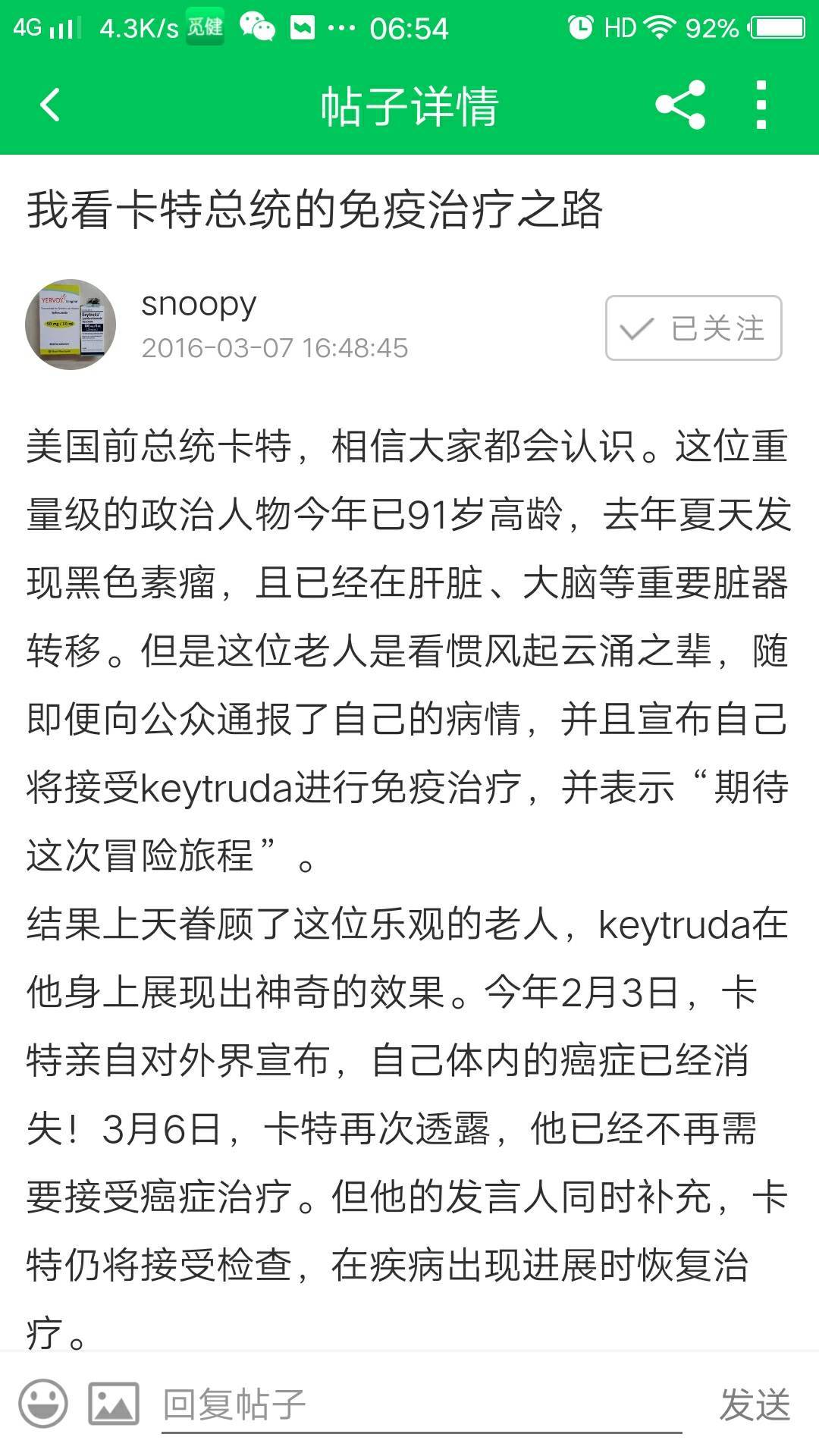 靠谱,据说卡特总统黑色素瘤就是派姆单抗治疗好的,去看一下snoopy的帖子