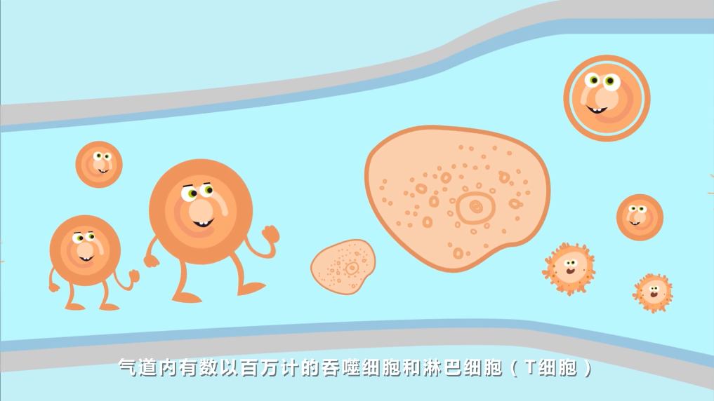 气道内有数以百万计的吞噬细胞和淋巴细胞(T细胞)。
