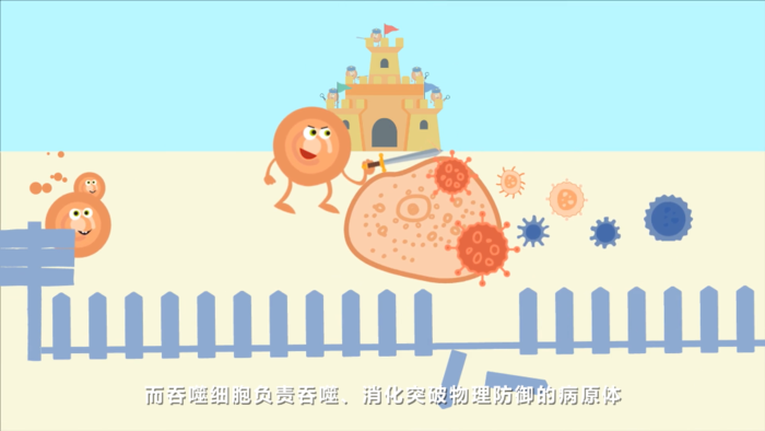 T细胞负责识别异常的细胞,直接杀死已被病原体感染的细胞。而吞噬细胞负责吞噬、消化突破物理防御的病原体。