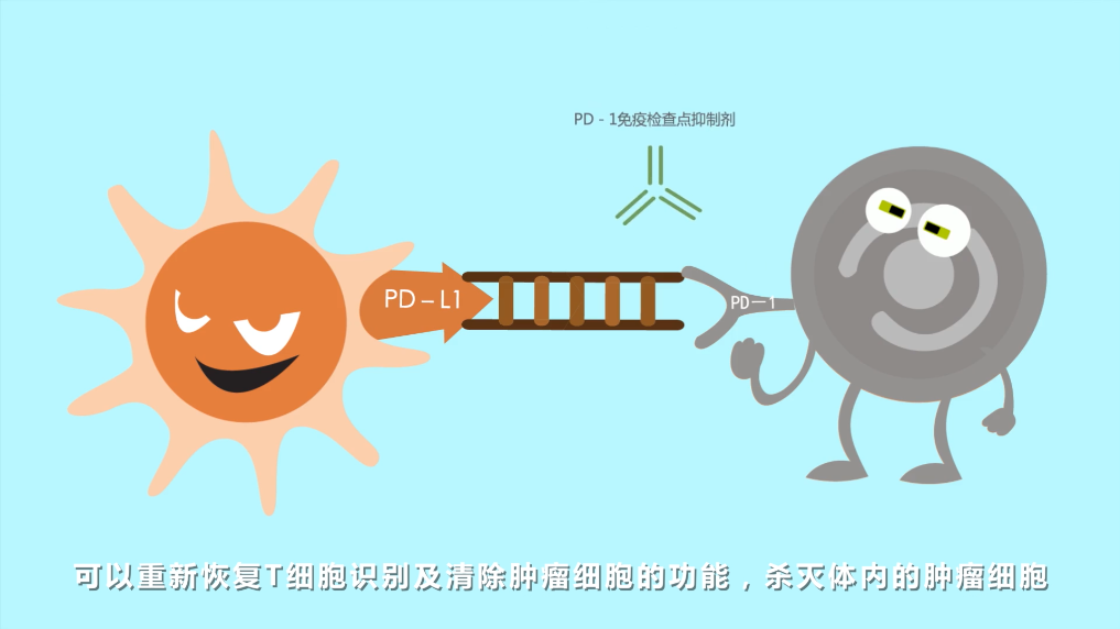 科学家们研发了抑制免疫逃逸的关键性药物,PD-1免疫检查点抑制剂,可以重新恢复T细胞识别及清除肿瘤细胞的功能,杀灭体内的肿瘤细胞。