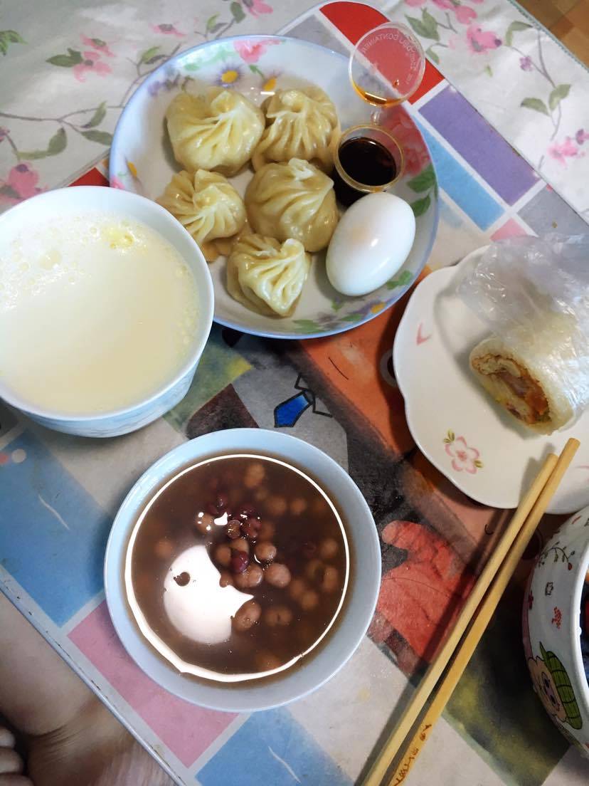 昨天中午老妈临时通知我,她在家太无聊了,要去广州姐姐那住两天,大姨也去,让我送她去机场,然后就送她去了,老爸出差去了,家里就剩我一个宝宝了,外加一条狗。昨天晚上Dr.li 送了很多吃的来。早上过来弄早餐吃,红豆鸡头米汤,小笼包,鸭蛋,牛奶,饭团。然后我吃了一个小时的早饭,都吃完了,刚刚拍照给他发过去,小伙子来了一句,原来那么能吃,一直隐藏饭量啊。我说今天就吃一顿,不要吃吃饱吗?