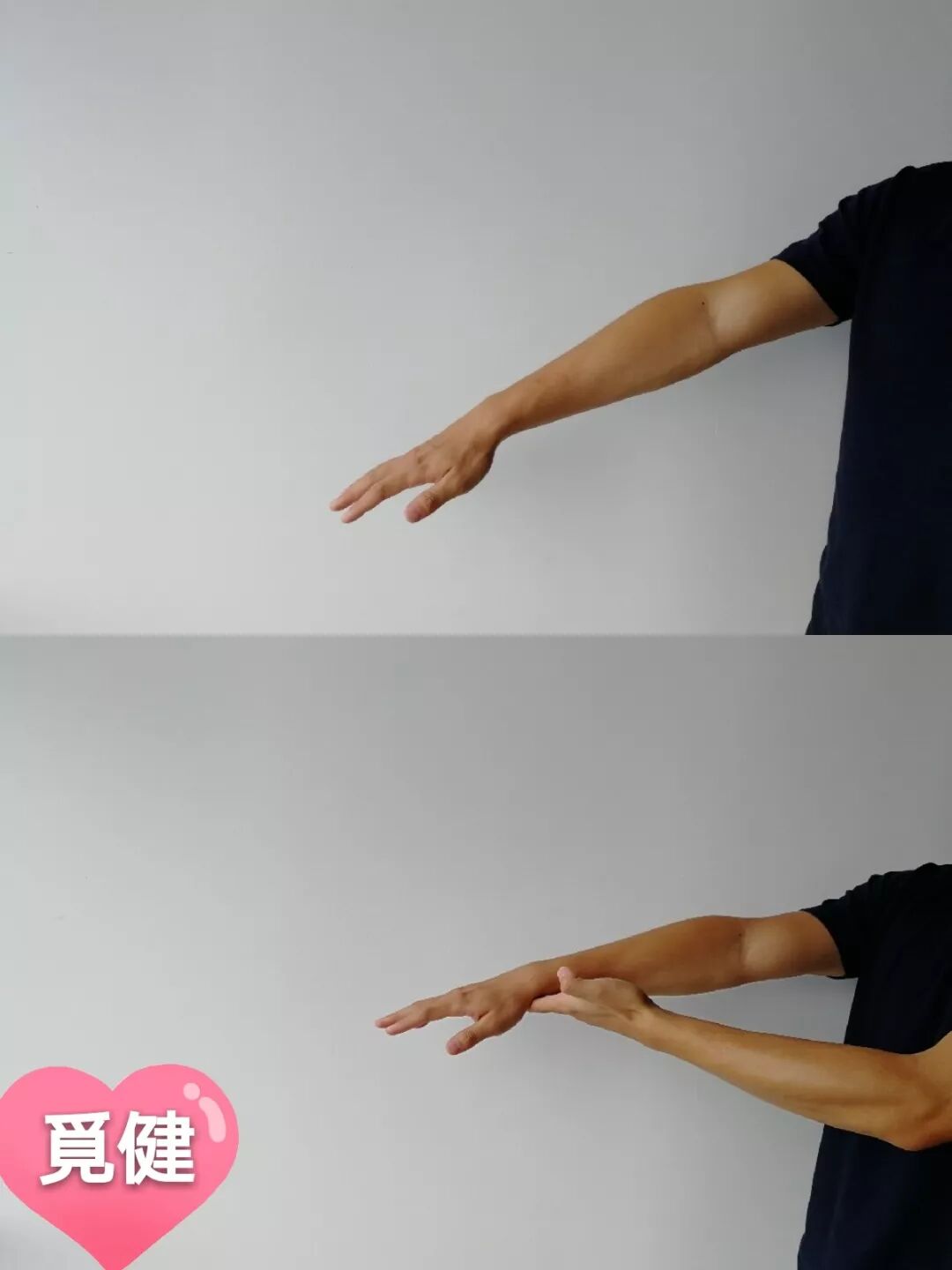 ②第3-4天在强化上述运动后,上下伸缩前臂,如果患侧肢体无力,可用对侧手掌托住患侧手腕,抬起前臂,反复进行。