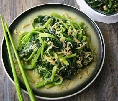 材料:鲜菠菜500克、熟芝麻15克,香油、盐适量。