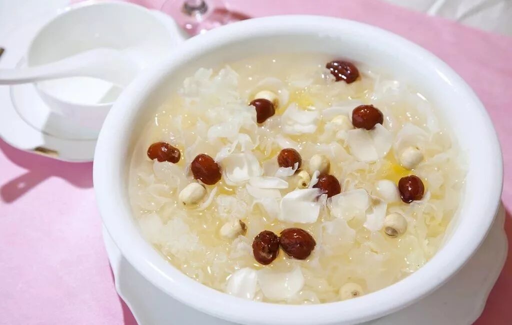 洗净材料一同入锅,加适量清水,先用大火煮沸,再用小火慢炖,调入冰糖即可。