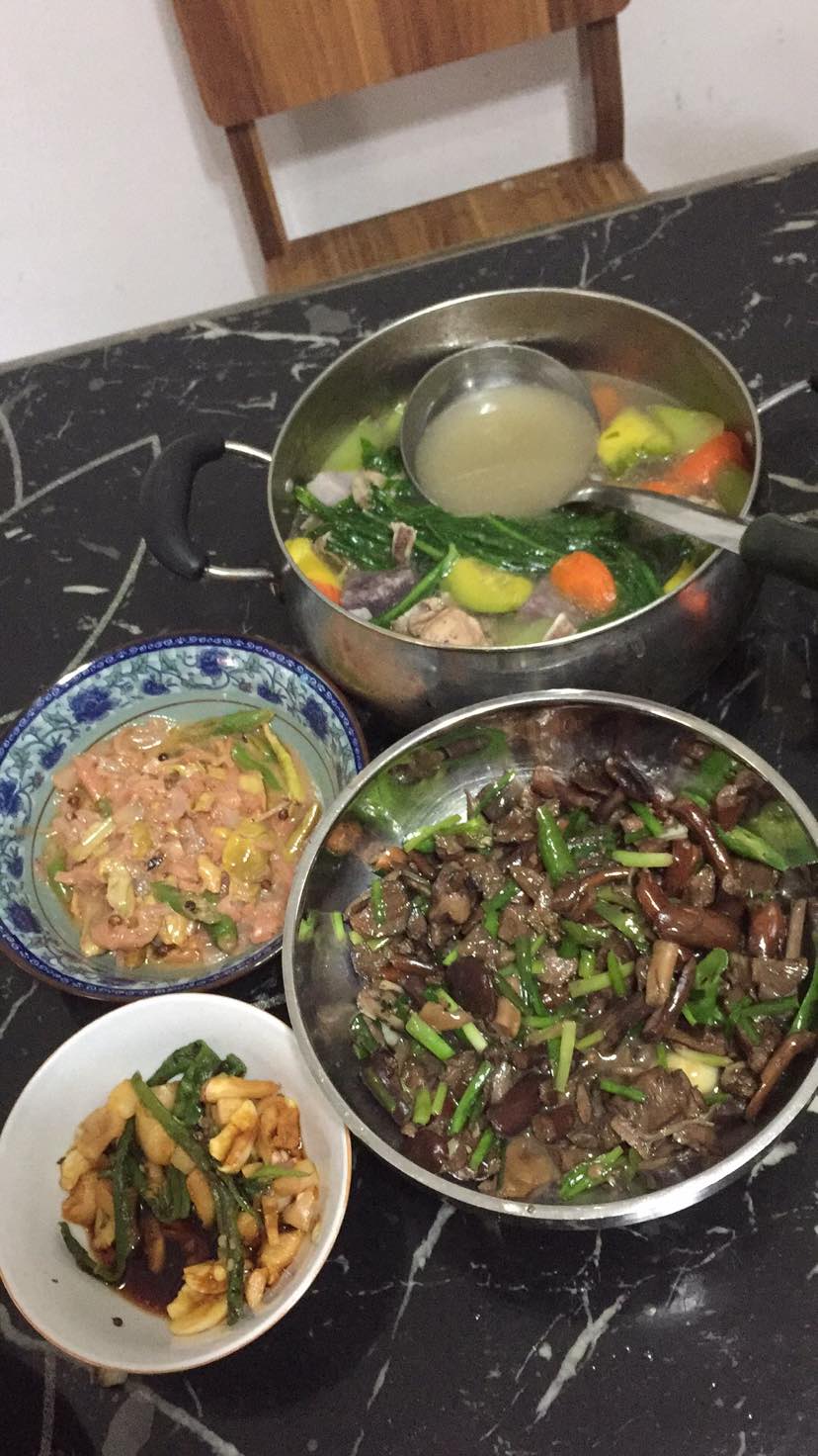 姐姐亲手为我做的美食(排骨杂菜汤,炒野生菌,炒芋花,青椒拌姜蒜)