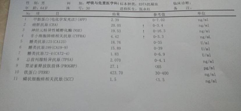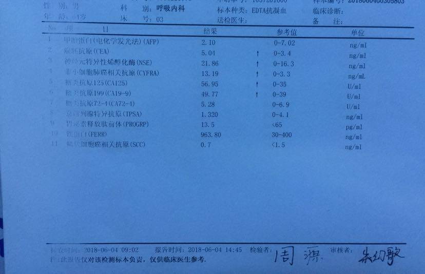 请问,其他的肿标都降低了,CEA反而越来越高了,真的有点懵圈呀!最近有点轻微咳嗽,CT现实还是有点积液,和以前一样的没有变化K药治疗5次了,这次是否要改一下单药方案?K Y试试看?请陈医生帮助分析一下!