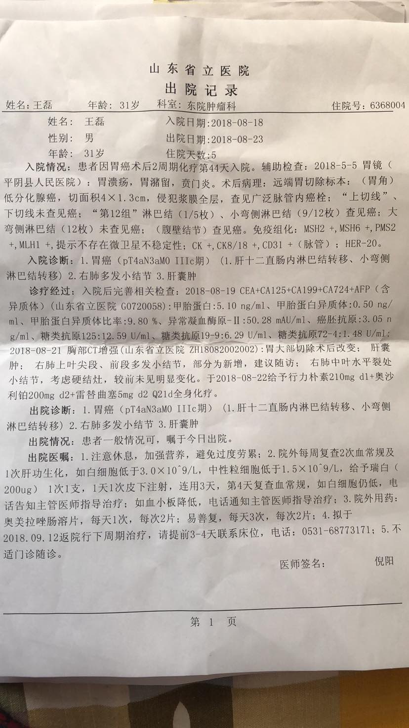胃癌术后第三次化疗