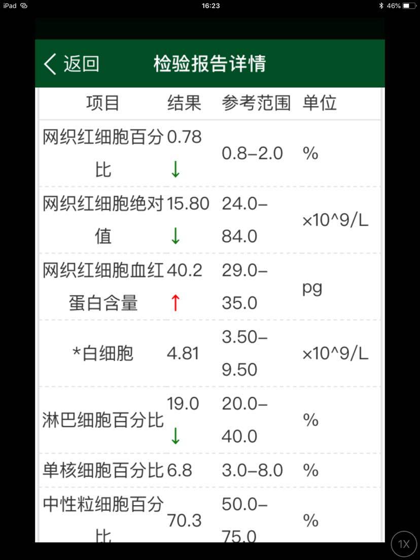 比我都严重,我吃了速力菲升上去了,你查查你是什么贫血