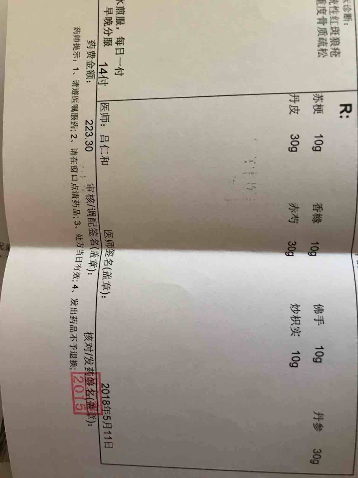 我看了一下我之前的血红蛋白,16年3月确诊检查是131,后来是120多,110多不等,最少好像是118,今年4月份查的,今年5月初我去中医药大学附属医院看了有名的吕仁和大夫,挂号费500,不过给我开的中药倒是不贵,我回来自己熬的,两周才83块钱,吃中药之后我发现睡眠比之前好了一些,还有口干咽燥的症状也改善很多,之前半夜要起来喝水,现在早起都没有那么想喝水了,我觉得还不错!但是还发现了一个不妙的问题,6、7月份,我反复发烧了好几次,一般是38度左右,没有吃药,一次39度吃药了,一个小时后就开始退烧了,还有,每次发烧的前奏就是头疼,像炸开锅似的,特别难受。