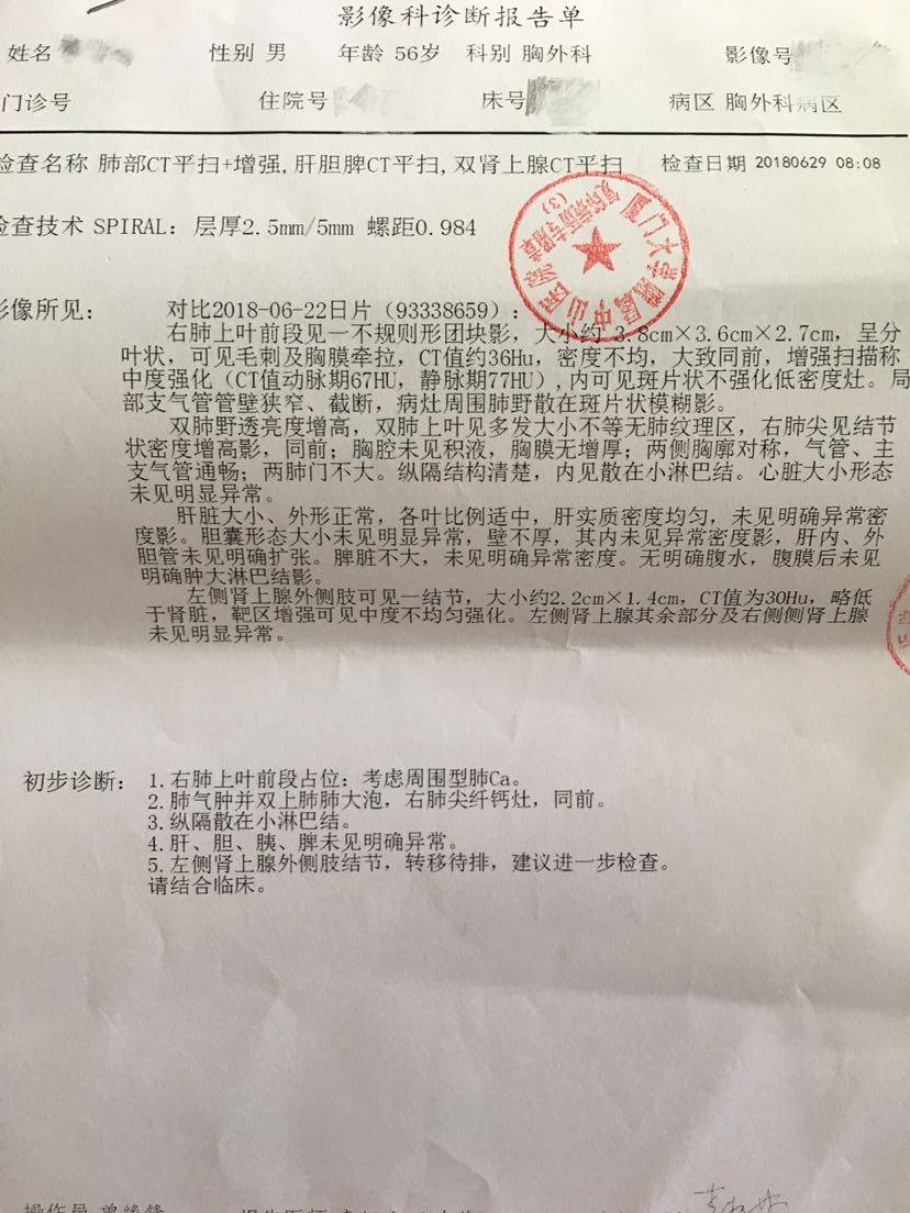 爸爸确诊病情已经有11个多月了。一共做了8次大化疗,2次小化疗,以及35次放疗,上月返医院检查“瘤子”没有了。这一路走来,有多少的艰辛与泪水。在这里与大家分享爸爸的治疗过程。起初,拿到病例报告的时候,