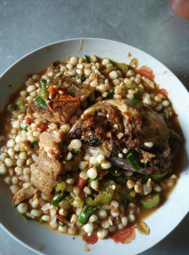 玉米辣椒肉鱼头,这是什么菜啊