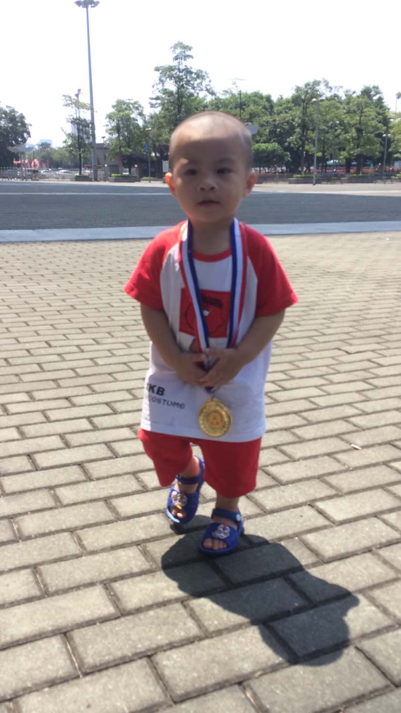 同时,我也要给我儿子做出表率,让他知道妈妈也在努力,遇到困难,要摆正好自己心态,想办法解决,努力争取。我把我第一枚奖牌亲手戴在我儿子脖子上,让他以我为傲!