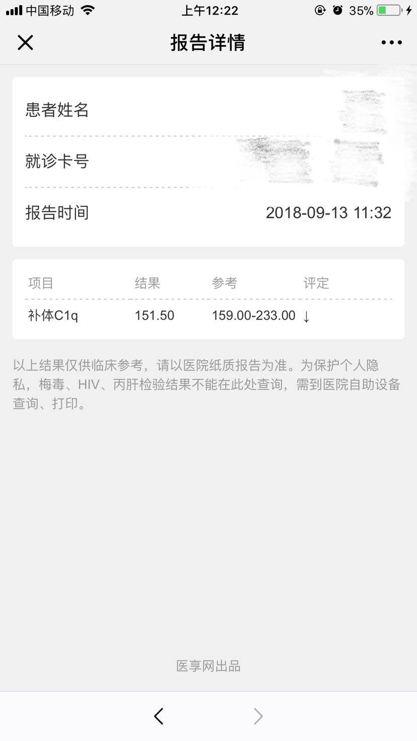 不知道这个数值需不需要紧张?其他的检查结果没什么问题,就是这个补体稍低了。