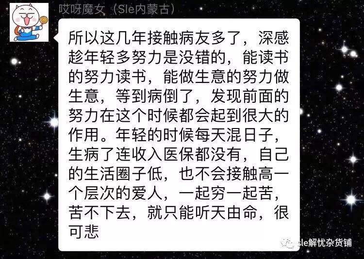 得SLE十年,之前没有找到大部队的时候,根本不了解这个病,也不知道它的利与害。