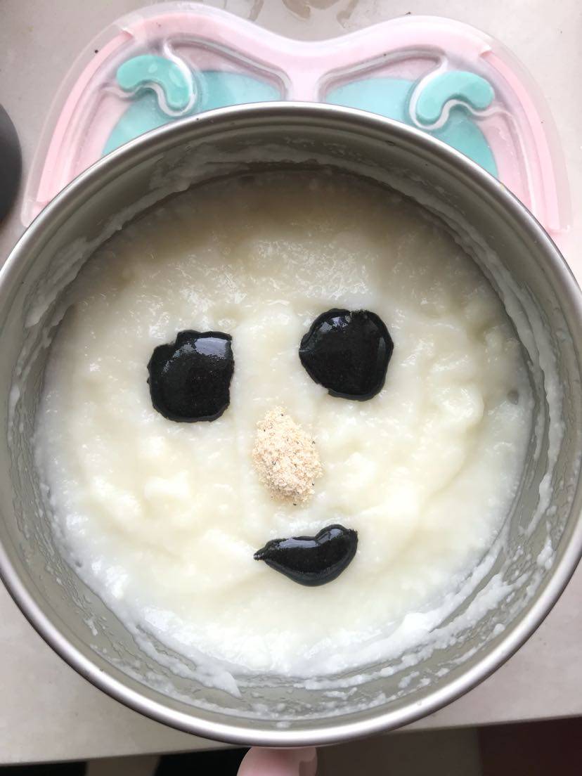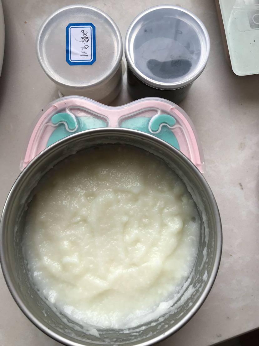 辅食餐:上午~加铁米粉➕🦐虾皮粉➕黑芝麻酱