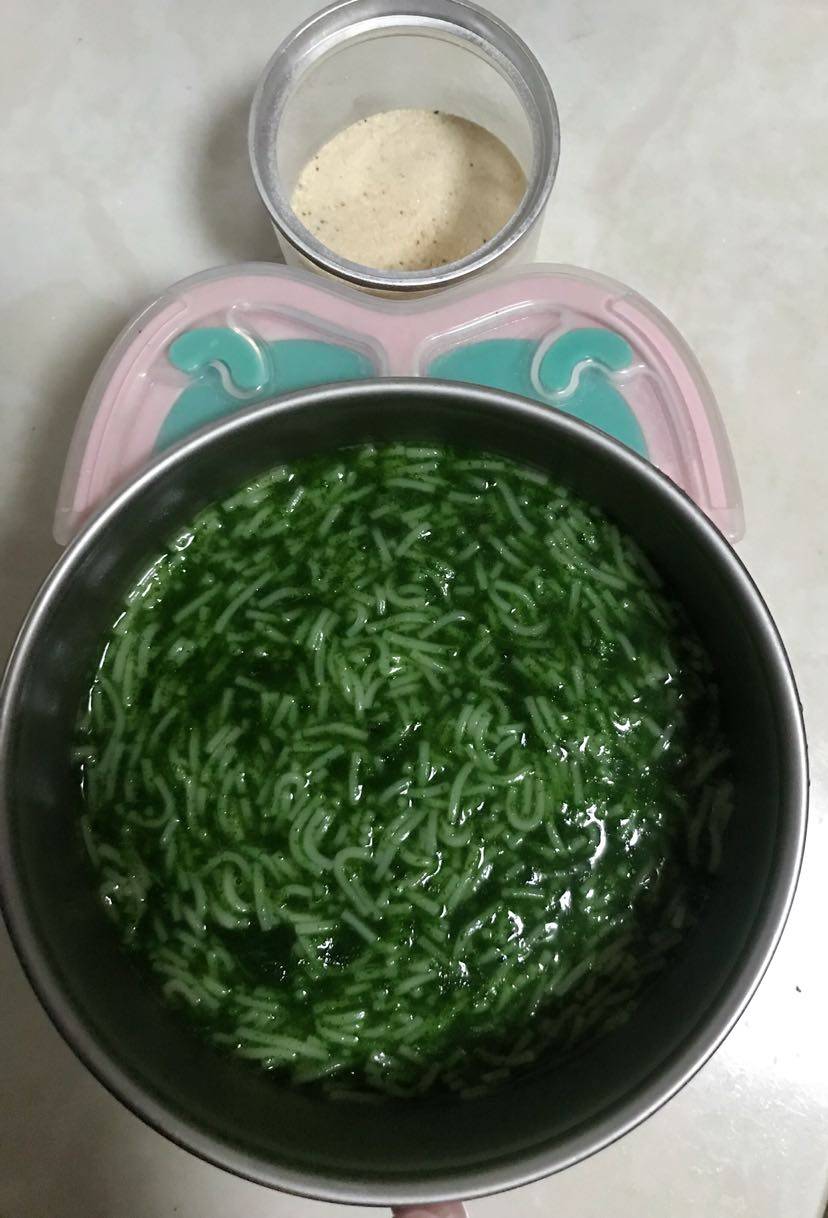 下午~🍜细面条➕菠菜泥➕🦐虾皮粉