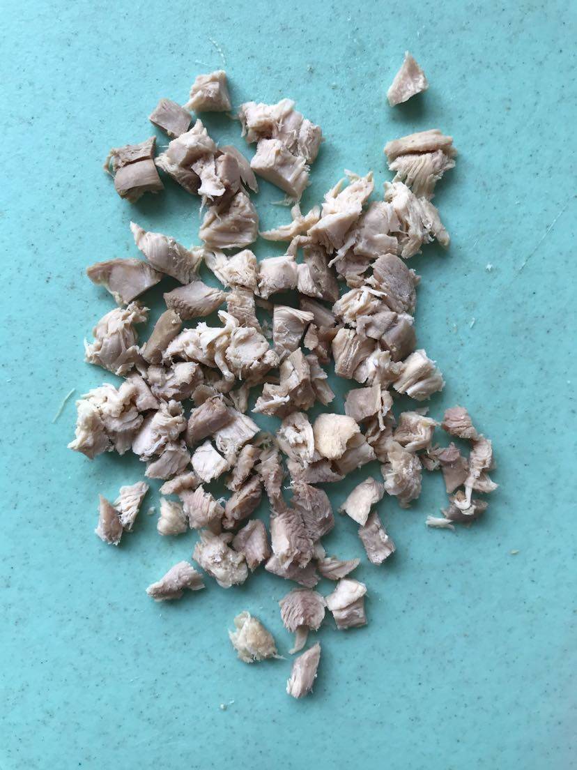 宝宝第一次吃肉类,猪肉出现了猪瘟不敢买了,昨天朋友给送的溜达鸡,我把鸡胸肉剃下来留着给宝宝吃,其他的我们炖吃了😄