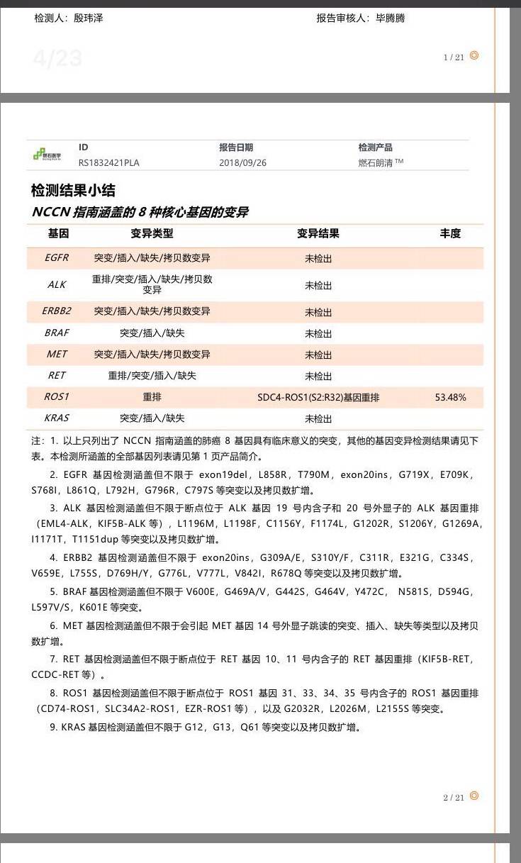 ROS1服用克唑替尼,坚持并及时随访复查。