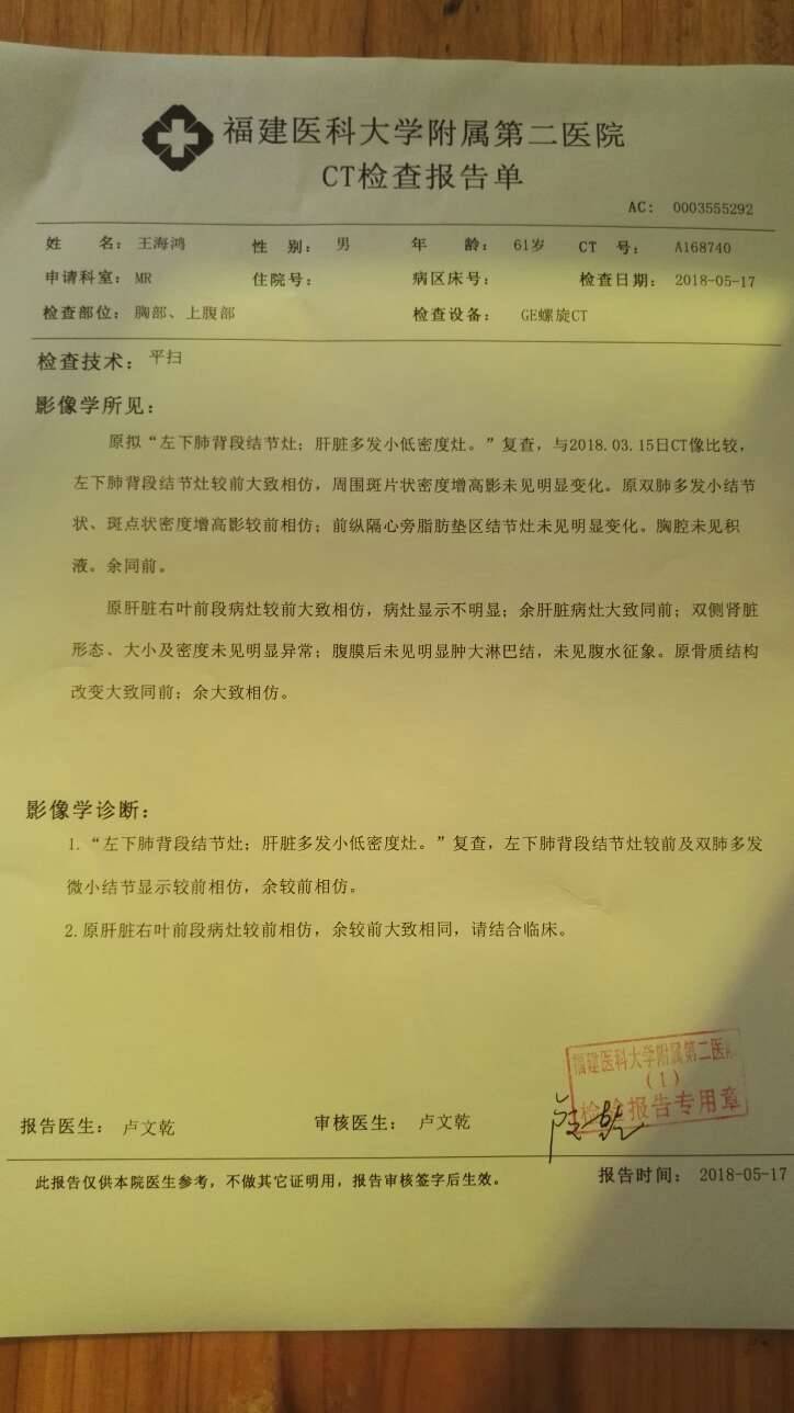 陈医生这个是5月份的报告单