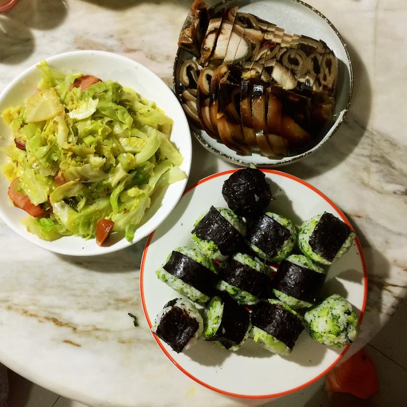 切碎,与白米饭拌到一起,放点寿司🍣醋,放点点麻油。