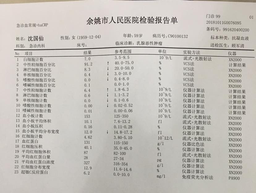 今天是一疗后第六天,中午体温38.5,担心死我了,速速联系医生,医生让我们去当地医院测个血常规,可以挂头孢消炎盐水,到医院急诊一测37.6了,血常规显示白细胞正常,既然到医院了就让医生配了头孢消炎盐水挂,傍晚到家又38.8了,真的好担心的,再次联系主治医生,医生说血常规显示好的,身体实在不适让我们去医院。此刻测38.2,真的好担心我