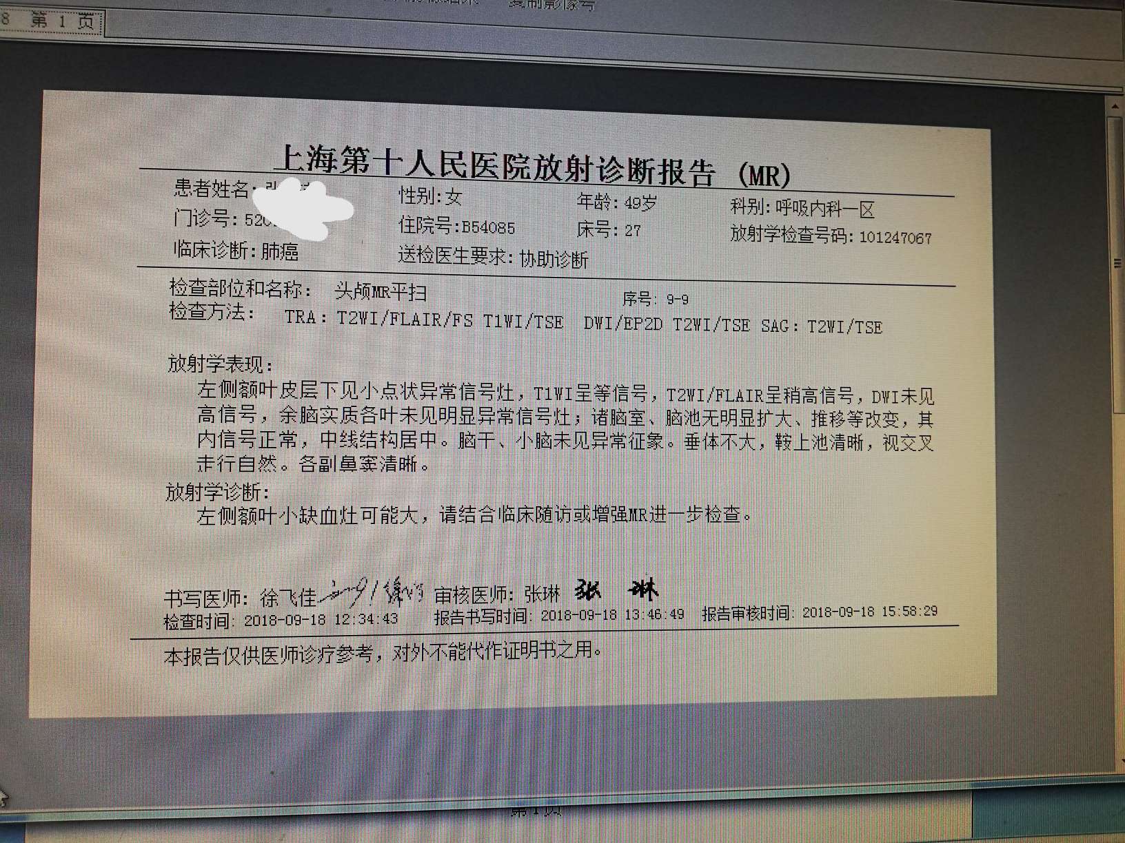 有脑转移的,复查一定要评估对比