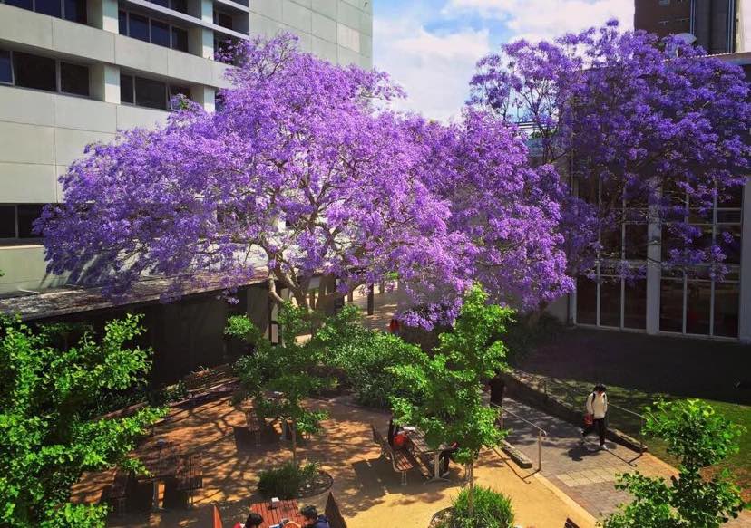 漫天蓝紫色的花瓣在校园飞舞飘落,美得一塌糊涂,这也意味着,学生们考试的季节就到了。因而,在校园里,蓝花楹还叫“考试花”看到它就知道,一大波Final将要来临...等到花儿凋谢,考试也就结束了。都说花落,考试过,是蓝花楹对学生们最美好的祝福。祝福儿子顺利完成学业。