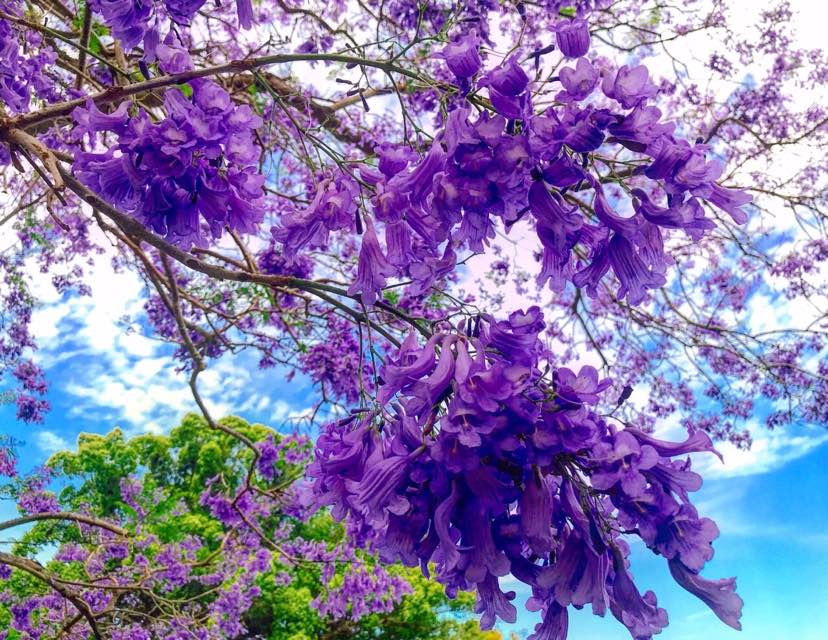 漫天紫色,儿子校园里的蓝花楹盛开了