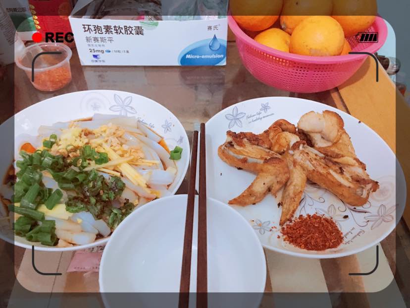 昨天透析的时候。有点凝血。说我吃太好。今天早餐粗粮饼干➕白开水。午餐炒了个生菜。下午就很想吃肉了😂😂😂一块五的凉粉。八块的鸡翅。拿回来自己拌好。炸好。果然比外卖便宜还好吃✌🏻
