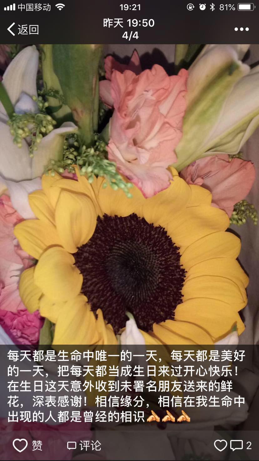 我庆幸,我有着深爱着我的朋友,现在的同事朋友们,给我关心支持和帮助,以前的战友好友们,一直都在给我各种鼓励,我大学,高中的同学朋友们,给我力量,给我信心……