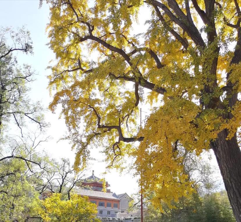 北京,不知道多少年的银杏,金黄灿烂,阳光下大大咧咧地炫耀自己,而蔚蓝之下,古老寺庙,安安静静地坐看云起,一幅和谐的画面,来自我朋友宁静平和的内心……看着她的照片,仿佛又回到了那些牵手同行的日子里……